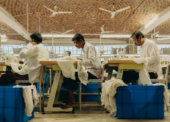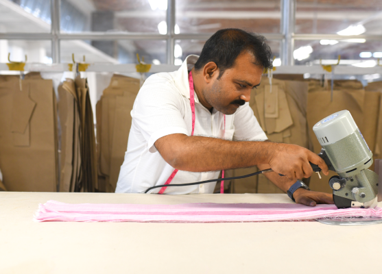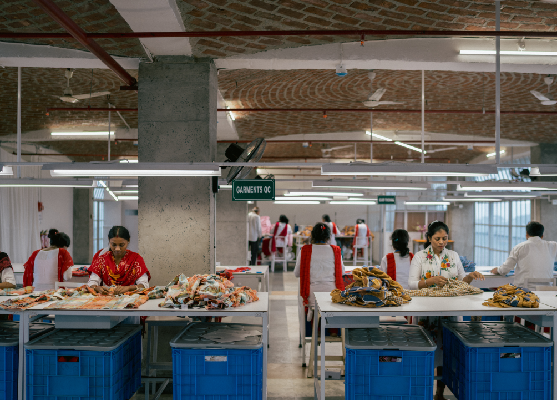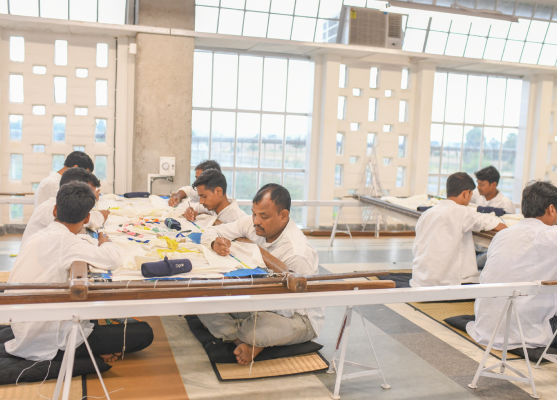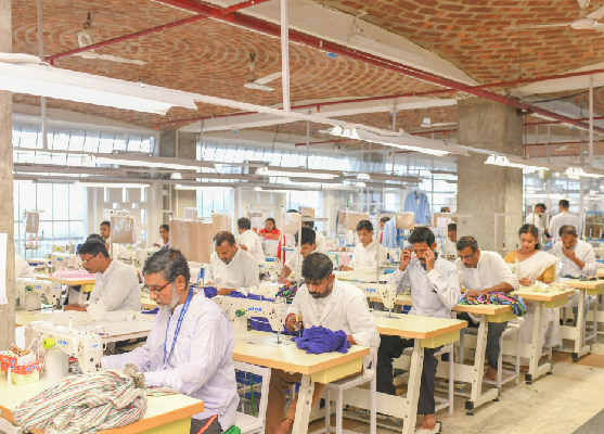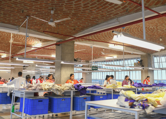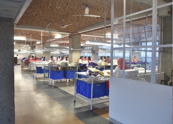Our expansion had to be accompanied by a new workshop, a workshop designed entirely for the needs of Seven Million. With the new unit we can produce around 500000 pcs annually. So, near Bardhaman, 80 kilometers from Kolkata airport, the construction of the workshop we dreamed of at the beginning is now commenced its production from September 2023. On almost two hectares, divided into two separate sites 500 meters apart, we have created our ideal space. Close to the transport routes, we built a four-story building dedicated to our production. While the weaver will continue to work from their village, in our collaboration we will carry out all subsequent steps such as printing, embroidery, and garment making here.