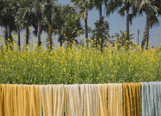 The Atelier Seven Million originated from a couple. One is Bengali Indian and the other is French. In 2006, Bapan and Lucie met at the School of Decorative Arts in Paris, where they studied textile design. They fell in love and began a long adventure of exploration, exchange and creation around textile know-how and between their two cultures. Their first trip together to India in 2009 gave them a new breath of life. They saw the local industry and came to a clear conclusion: the knowhow was unique but very disorganized. Some dyeing steps, in particular, were carried out without any respect for standards or environmental consciousness. Artisans and artists were not valued as they should have been, resulting in disinterest from younger generations for these manual trades. Without being imminent or even really felt, the disappearance of these know-hows seemed inevitable for several decades.