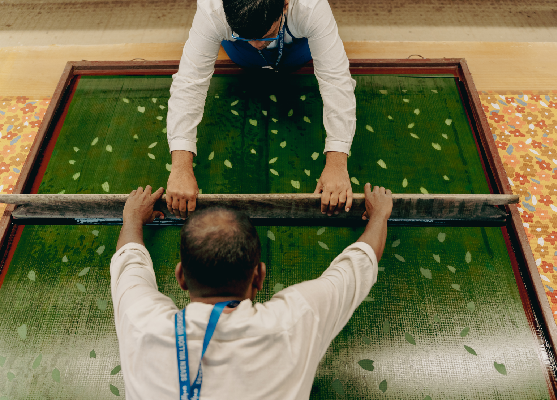 Additionally, we recently developed block printing. The craft of block printing has gradually disappeared in Bengal over the last few decades; however, it is still widely practiced in India in the Jaipur region. We are committed to reviving this practice in the region. We are working to develop this exclusive craft further and have reserved printing tables for its practice in Bengal.