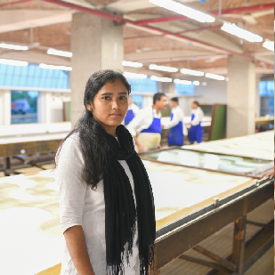 Additionally, we recently developed block printing. The craft of block printing has gradually disappeared in Bengal over the last few decades; however, it is still widely practiced in India in the Jaipur region. We are committed to reviving this practice in the region. We are working to develop this exclusive craft further and have reserved printing tables for its practice in Bengal.